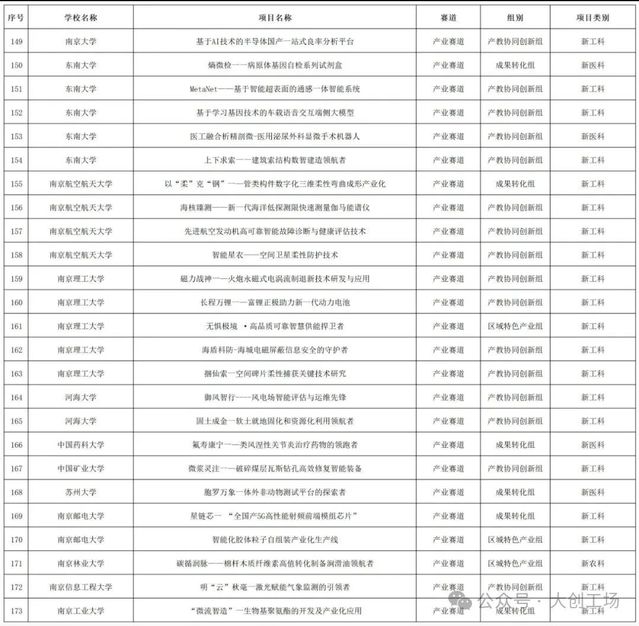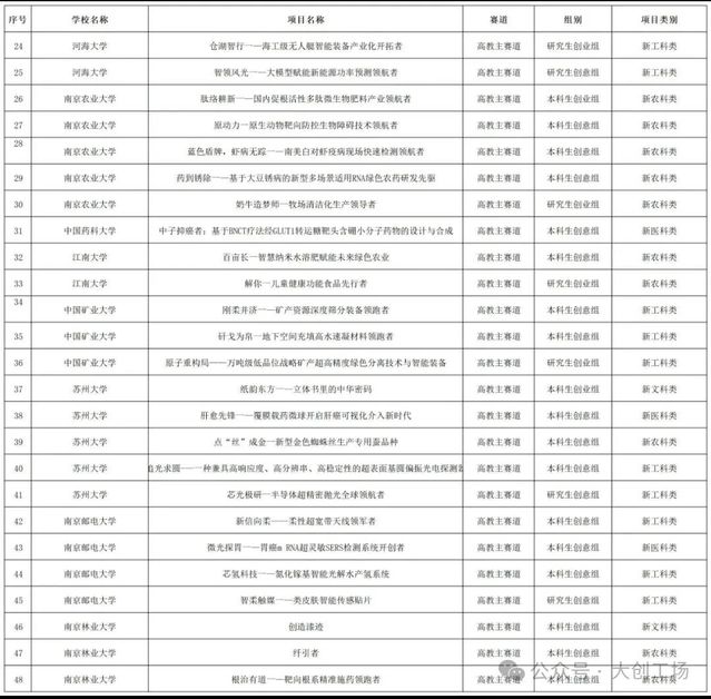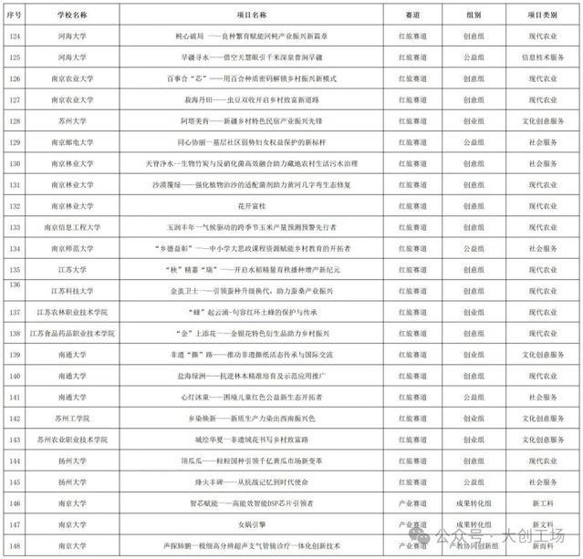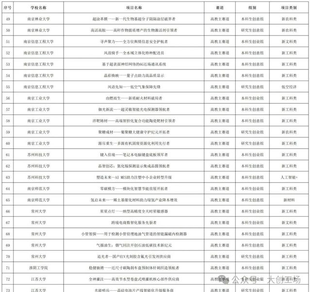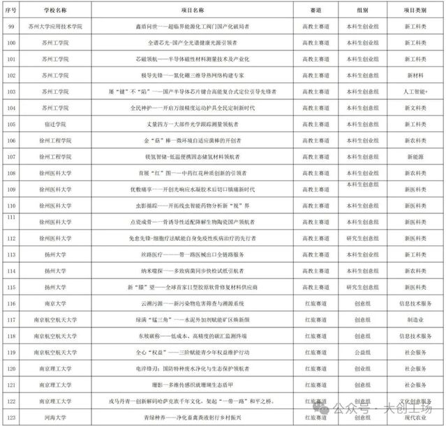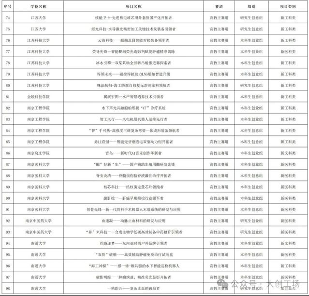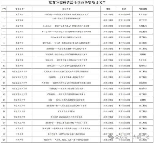 江苏各高校晋级中国国际大学生创新大赛(2025)全国总决赛项目名单