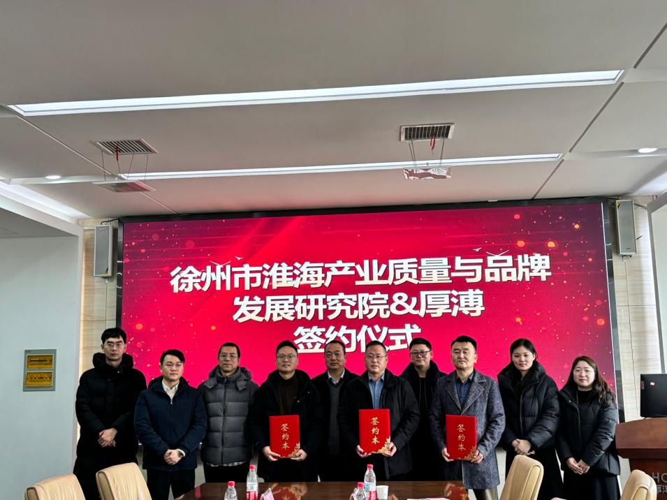 2026年1月27日上午,徐州市淮海产业质量与品牌发展研究院与厚溥集团在武汉厚溥数字科技有限公司花山会议室举行校企合作签约仪式。本次会议以“校企联动创新,动漫赋能发展”为主题,旨在通过校企联动,实现多方共赢,培养应用型创新人才。