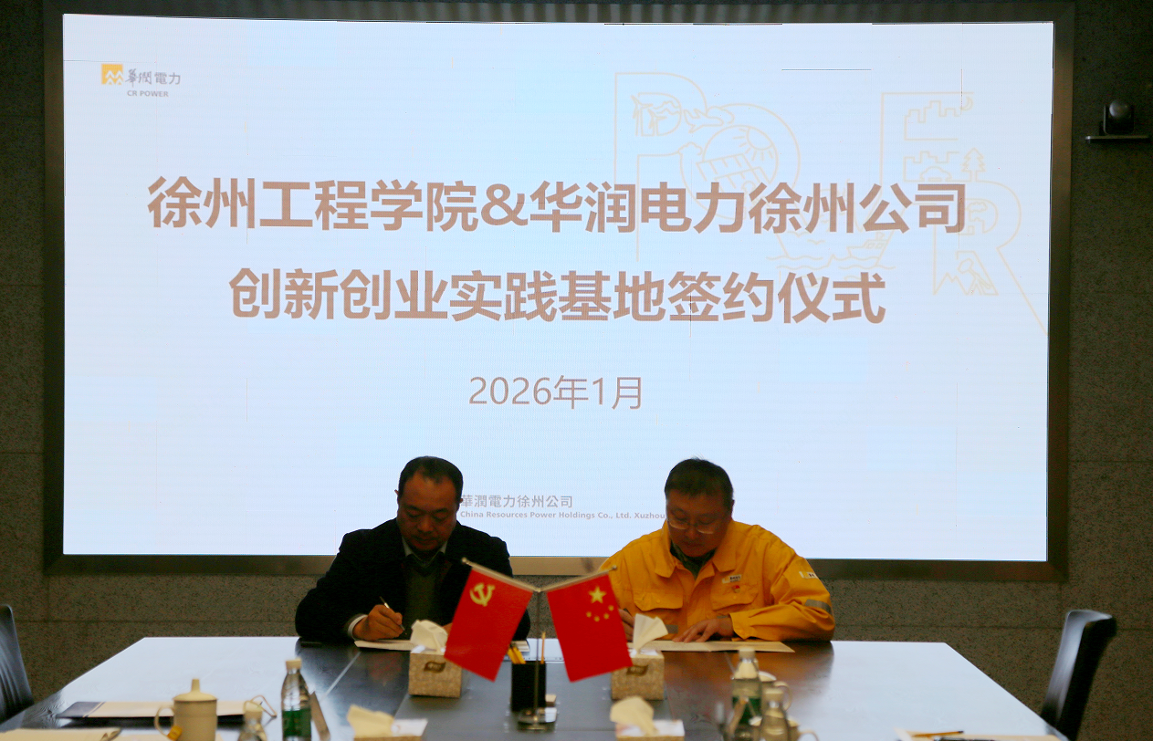 徐州华润电力有限公司成立于1994年6月20日,是原国家外经贸部批准、国家工商局注册的第一个电力中外合营公司,全国电力行业中首个按国际惯例和现代公司制组建的企业。业务覆盖风电、光伏、火电、水电、分布式能源等多个领域。此次校企合作创新创业实践育人基地的建立,将有效推动我校双创实践教学与能源电力生产实际精准对接,促进人才培养与行业产业发展需求深度融合,为培养掌握新型电力系统运行控制技术的高素质应用型人才提供坚实支撑,也为双方后续开展更广泛、更深入的合作奠定了坚实基础。